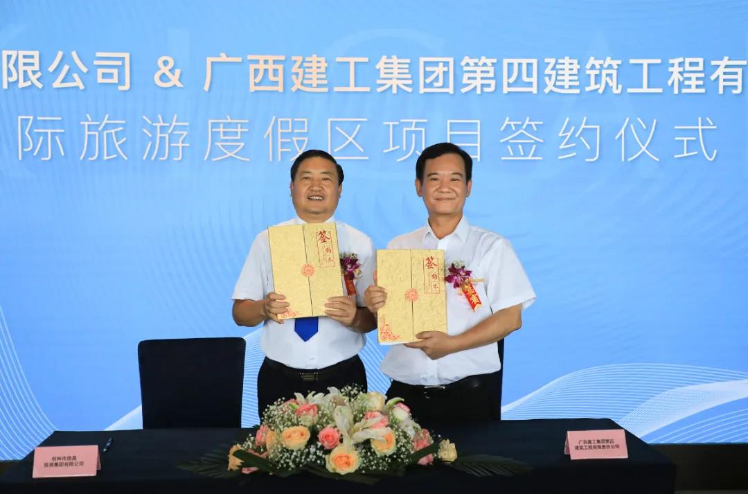 在雙方工作人員與媒體的共同見證下,桂林市信昌投資集團有限公司董事長賓恩信與廣西建工集團第四建筑工程有限責(zé)任公司董事長邱國興代表雙方正式簽訂合作協(xié)議。