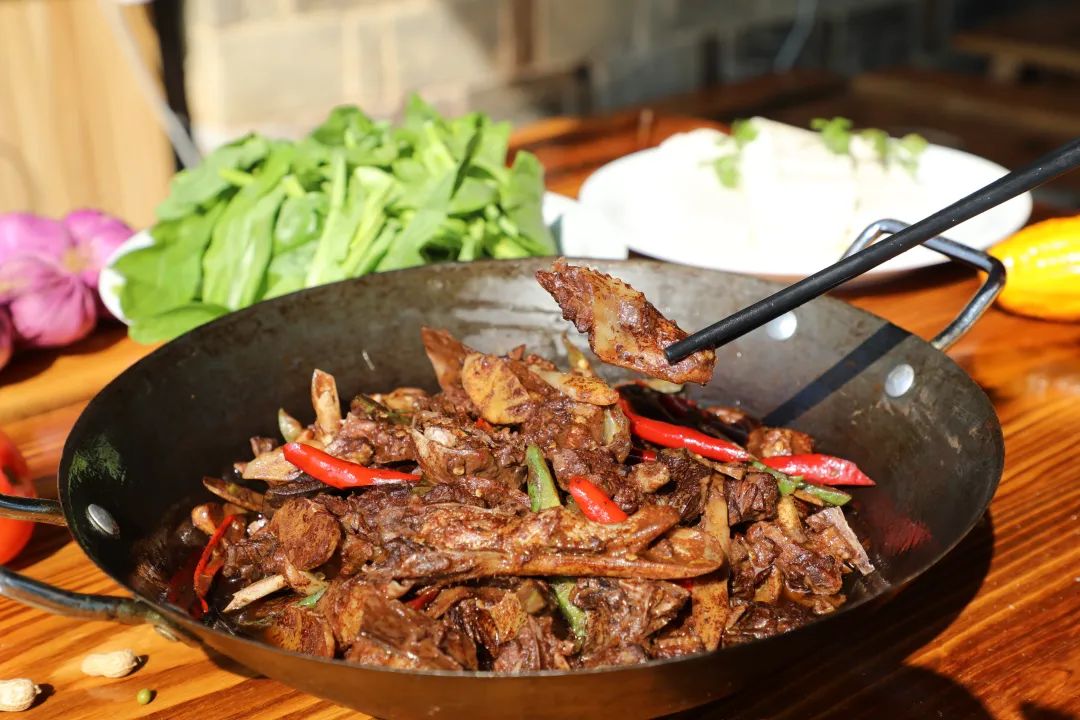 大碧頭的美食吃在自然原生態(tài),山間生長(zhǎng)的雞鴨鵝、扎根于自然間的蔬果,造就一道道味美飄香的美食。坊間有著不可錯(cuò)過(guò)的醋血鴨,兩度榮登央視是它的金字招牌。酸香入味,一口下去有著難以言喻的滿足感,廣受游客的好評(píng)。