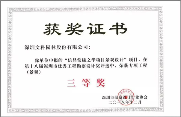 榮譽(yù) | 棠棣之華斬獲工程設(shè)計(jì)界權(quán)威大獎(jiǎng)——第十八屆深圳市優(yōu)秀工程勘察設(shè)計(jì)獎(jiǎng)專項(xiàng)工程(景觀)三等獎(jiǎng)!
