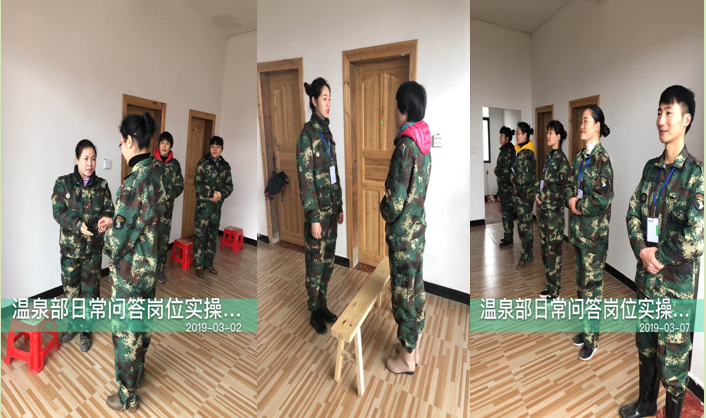學習就像一座藏滿寶藏的大山。俗話說:一日之計在于晨。每天早上,我溫泉部的員工個個都精神抖擻、興致高昂地準備迎接每日例行的部門專業(yè)知識培訓——1+1服務技能培訓及溫泉崗位實操訓練。領(lǐng)導們會細心地點評我們在培訓中的不足,并及時予以糾正。領(lǐng)導們的細心教學,讓我們從一個個外行,逐步成為一個個專業(yè)的從業(yè)人員。隨著時間的推移,我們一天一天學到了更多的專業(yè)知識。下班之后,兄弟姐妹歡聚在C102宿舍中談笑風生。我們一起談人生,談理想,好一派其樂融融的景象。溫泉部的日益強大,離不開領(lǐng)導們無私的付出和隊友們的共同努力。