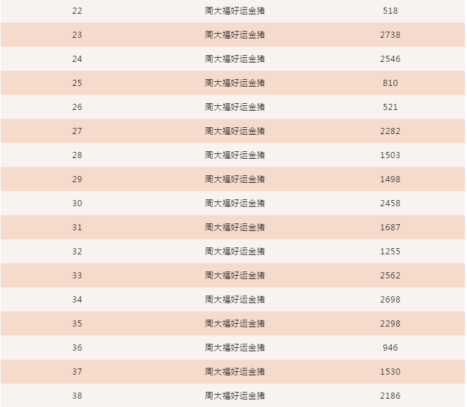 每人均獲價(jià)值1500元周大福金豬一個(gè)