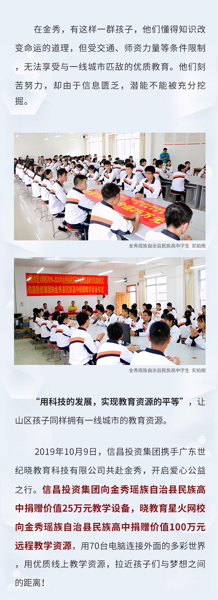 教育興邦、科技強國!信昌投資集團攜手廣東世紀曉教育科技有限公司金秀公益行,為山區(qū)孩子架起通往世界的橋梁!