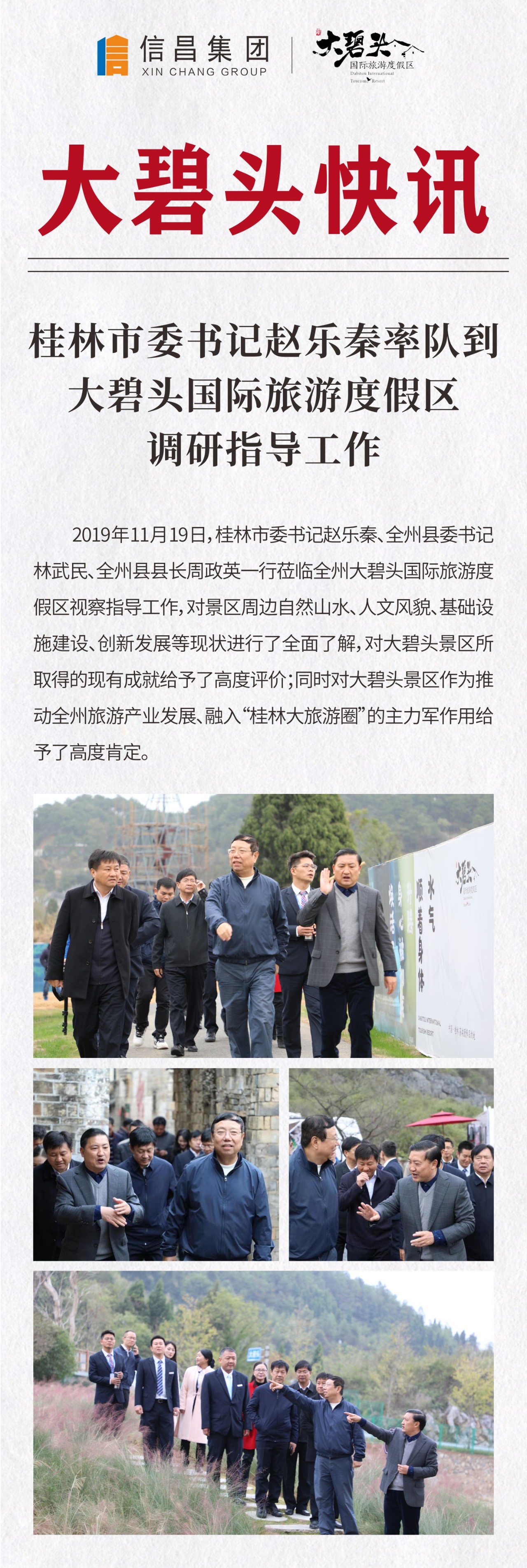 桂林市委書記趙樂秦率隊到大碧頭國際旅游度假區(qū)調研指導工作