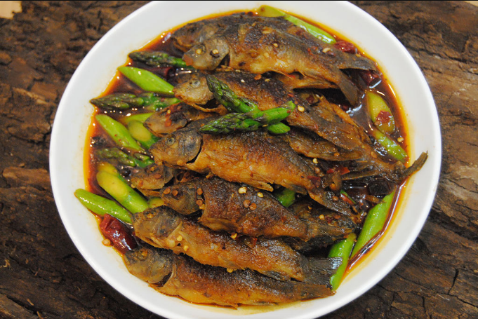 夏收之季盛也,取鮮魚(yú)以清水靜養(yǎng),使其吐盡泥沙。去苦膽,以鹽、姜絲、獨(dú)蒜、豆豉燉制,待其湯色乳白,魚(yú)體熟透,加以青紅椒絲、藿香、蔥花燒煮即可。其時(shí)也,湯開(kāi)魚(yú)熟,滿(mǎn)屋飄香,味道鮮美,富含膠質(zhì),其食用多樣,尤以瓦罐煨煮,其味最佳。或得而臘之,另有風(fēng)味,其成品金黃油亮,聞香生津,久食不膩。全州自古有諺云:"禾花魚(yú)下酒,見(jiàn)者不走。"魚(yú)出田時(shí),戶(hù)戶(hù)飄香,全州人古有"見(jiàn)者入席,喝酒吃魚(yú)"的習(xí)俗。"臘魚(yú)仔送飯,鼎鍋刮爛","炒魚(yú)肚貨,肚子脹破",其言實(shí)也。