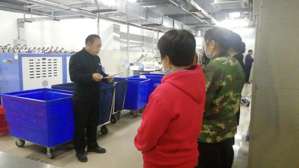 洗衣房正在培訓如何使用機器以及使用注意事項